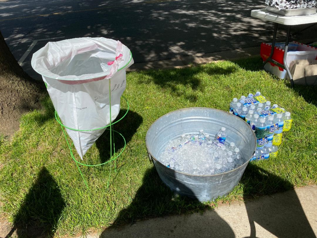 Those of you who attended the opening for the “Say Their Names” art gallery will remember: It was a windy day! The most brilliant invention of the day were the garbage cans Beaver Wyatt created out of tomato cages and plastic bags. Genius! Trash cans would have blown away. Beaver’s trash cages? We didn’t lose a one!
